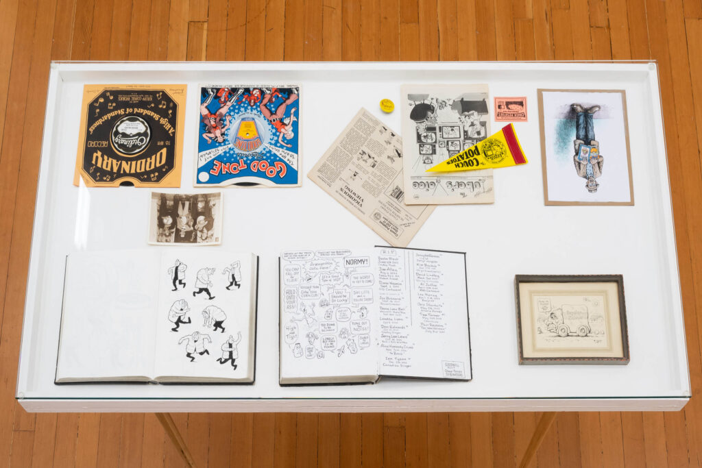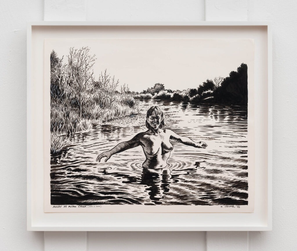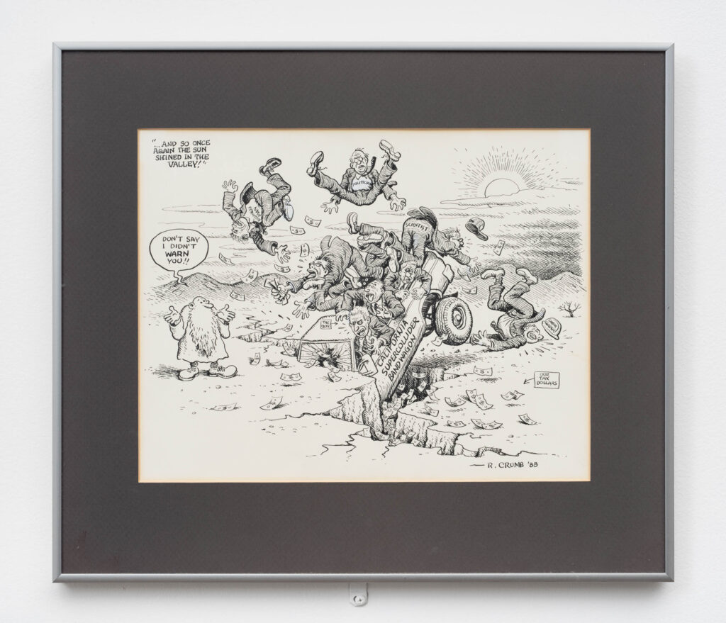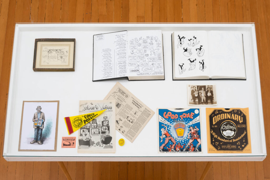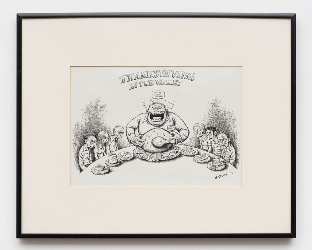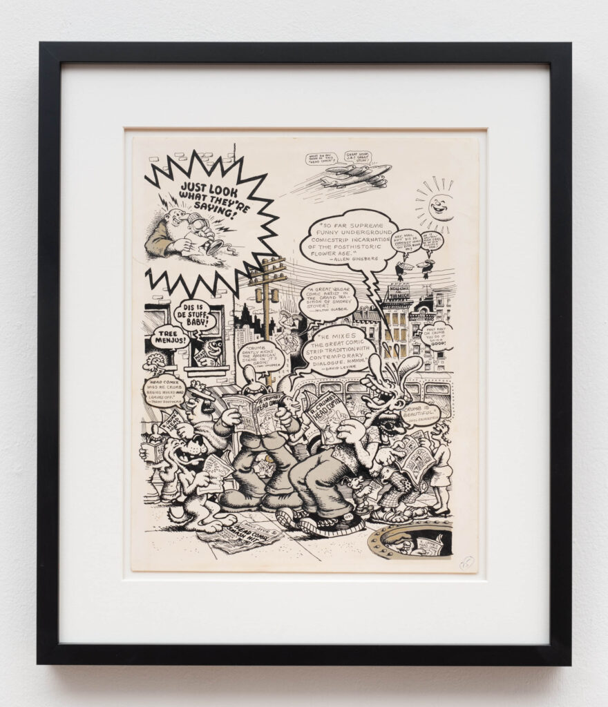Nadel reports that one of the pleasant surprises of his research was encountering Crumb’s generous friends. Primarily through bartering, many of them came to live with artworks, including drawings from the very first Zap Comix, iconic Mr. Natural pages, portraits of lovers, friends, and admired musicians, political cartoons, object studies, and the self-portrait that became the biography’s cover. Cushion Works is pleased to present these works, most of which have never before been exhibited.