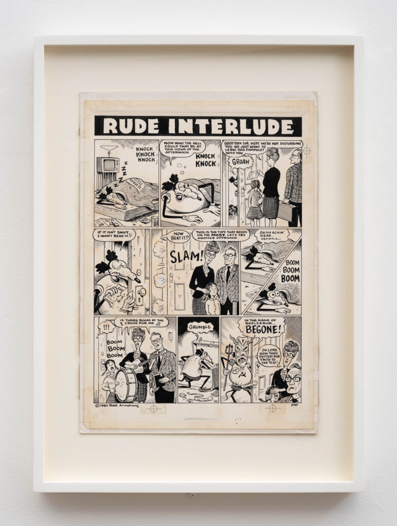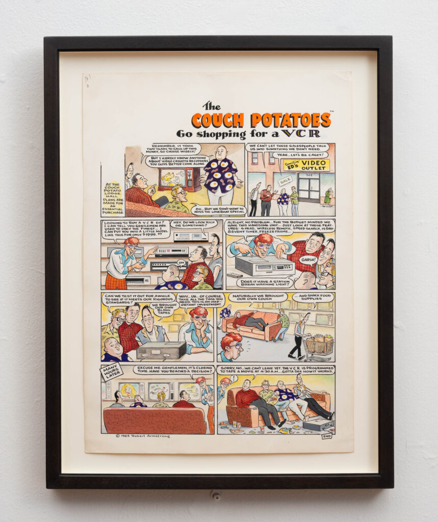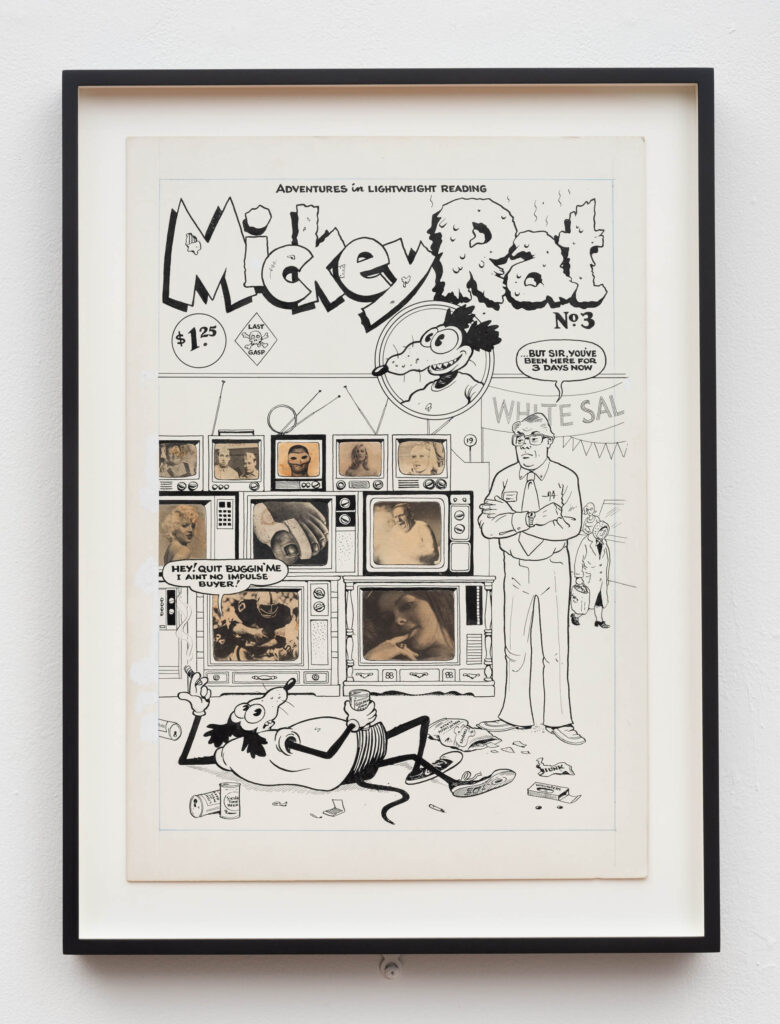 Robert Armstrong (b. 1950, Pasadena) is an artist and musician best known for creating the rodent reprobate Mickey Rat in a series of underground comics and for popularizing the term “Couch Potato” after founding an organization of avid TV viewers in the 1980s. He lives and continues to play music in California’s Central Valley.