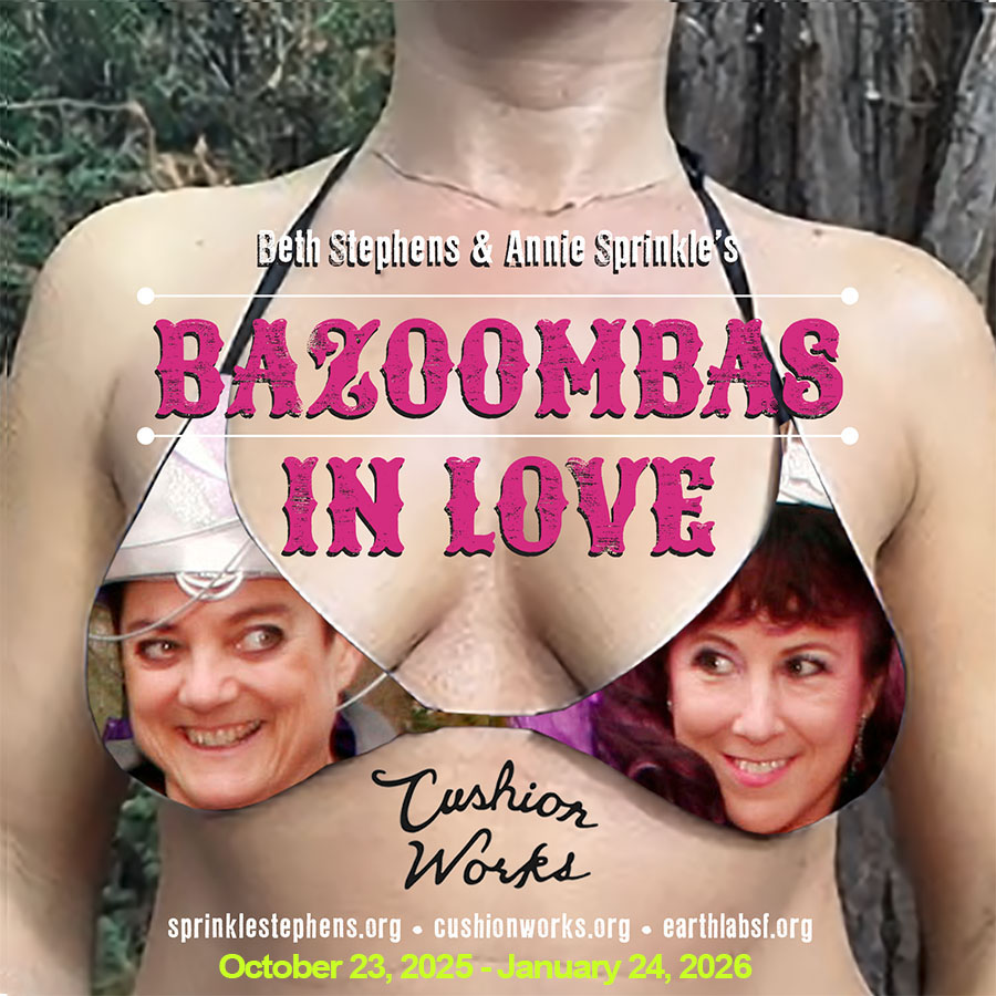 The exhibition features brand new visual artworks, a “Love Infusion Clinic,” bronze chest casts, Beth’s early photographs, a boobliography, vintage materials spanning Annie’s five-decade career, and much more. A separate room includes breast-related artworks from their personal collection, made by friends, colleagues, and community members.