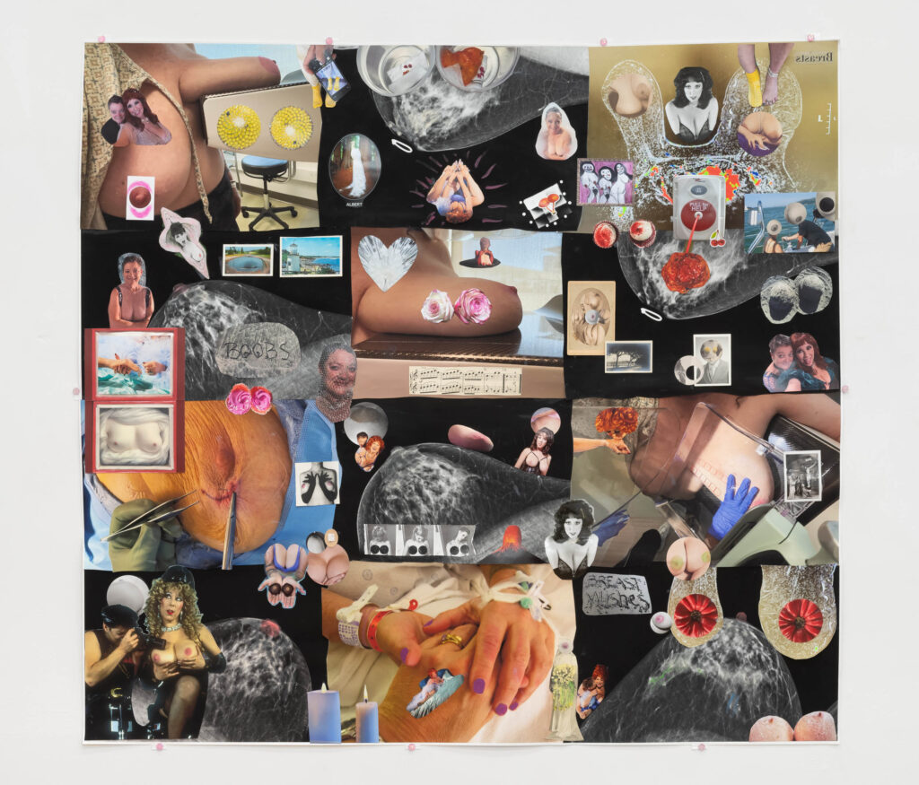 News of a breast cancer recurrence, followed by a lumpectomy this past summer, inspired the idea of a San Francisco exhibition about change, desire, and disease. There could be new collages made from strangely beautiful MRI scans mixed with old pin-up photos, cheeky mammogram selfies, a celebratory photo shoot of their aging and erotic breasts, and the sharing of creative strategies for survival with their communities. But the pathology report revealed more cancer, an “occult” form undetectable in scans and visible only in the laboratory. A double mastectomy was suddenly very much on the table, along with related questions: What does a commitment to art, life, and repair look like under such conditions? And how does an artist and performer primarily known for her bazoombas face the prospect of living without them?