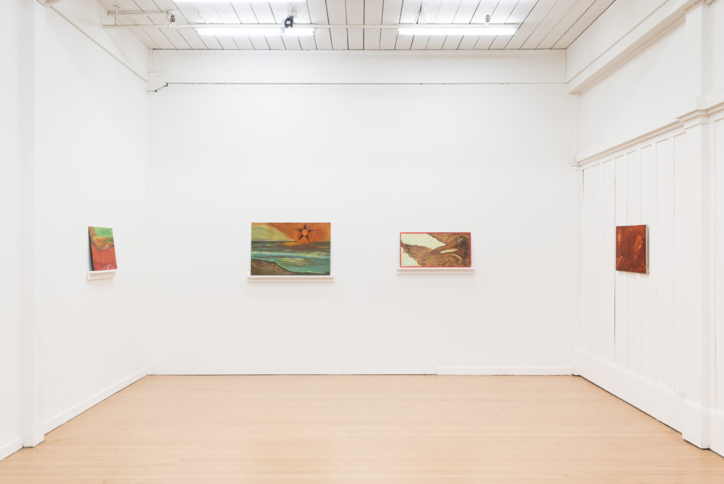 Burl J. Newton (1926-1994), incarcerated in California for most of his adult life, was free to make paintings that he grouped under the name “Depositional Records of the Second Coming in Abomination of Desolation.” The eleven works on view are thickly painted chronicles of earthly heaven and hell caked with the colors and brushed-in forms of glory and destruction. Some are structured along promising horizons, others are dreamlike agglomerations of creatures, symbols, and landscapes. This exhibition is the first Bay Area gathering of Newton’s work since a 1970 group exhibition at the San Francisco Art Institute.