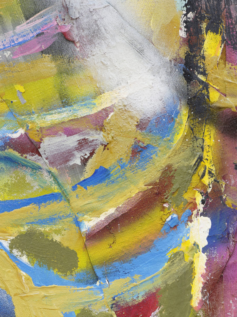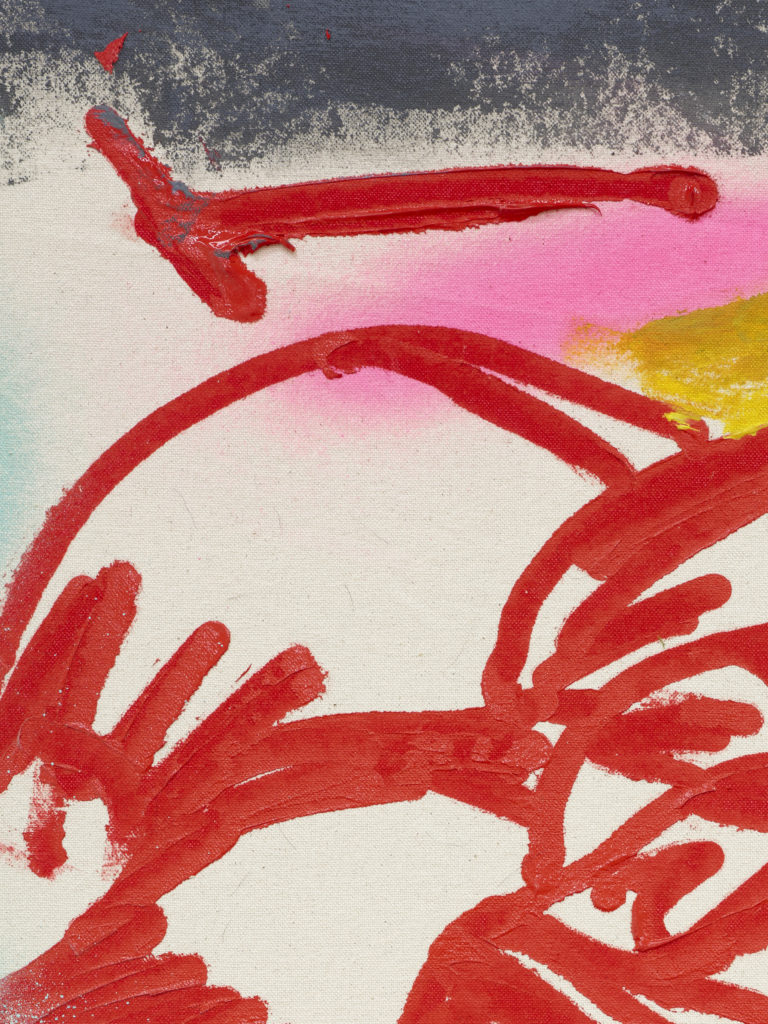 Grace Rosario Perkins renders maximalist, color-driven paintings in acrylic, spray paint, and collage on canvas. She is a free-stylist, working from intuition, and quickly; her marks are malleable, and subject to near-perpetual change as paintings materialize. The works map relationships between colors, forms, feelings, people, peoples, the past and present. They are landscapes between the mind and the world, streams of consciousness preoccupied with the ways in which life overlaps with other life.