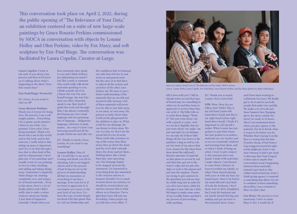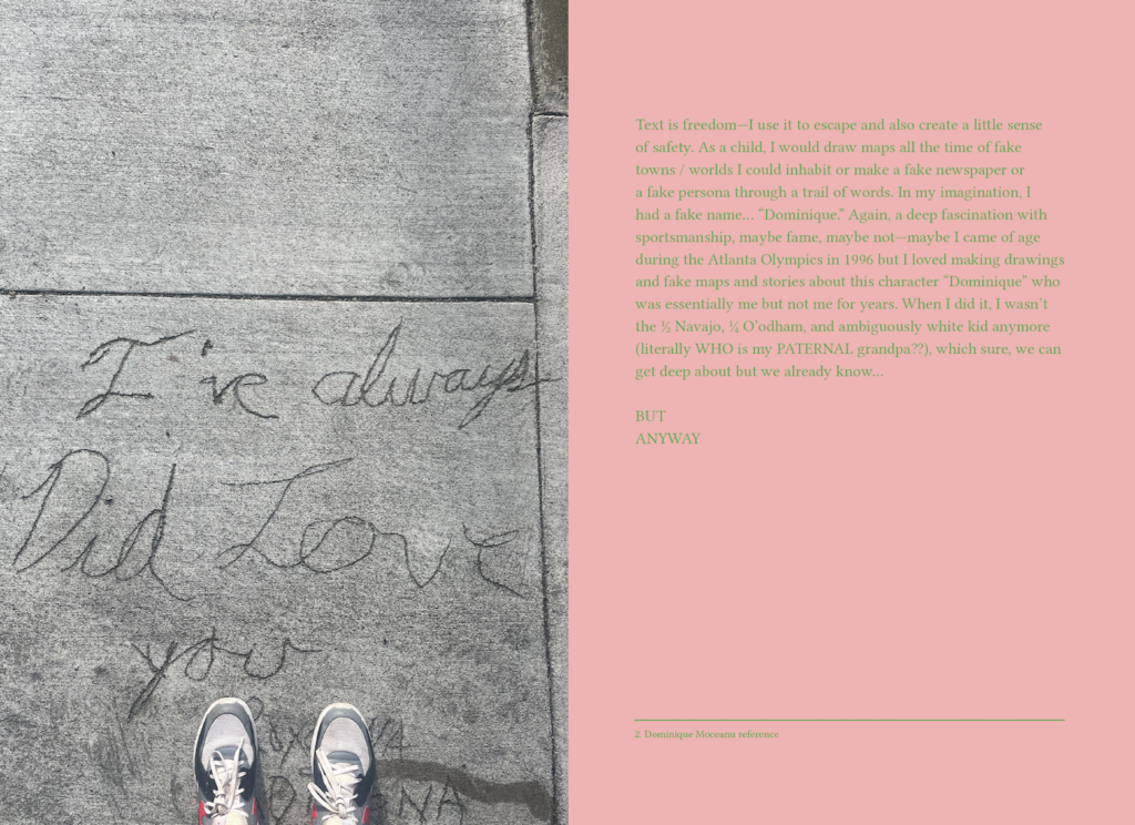 A kaleidoscopic collection of reflections, snapshots, devotionals, artworks, musings, and more by Albuquerque-based artist Grace Rosario Perkins. Part diary, scrapbook, and self-portrait, Solid Ground traverses everything from family photographs to bad graffiti in an effort to summon and reflect inspiration from across the artist’s life. The book further chronicles Perkins’ recent exhibitions at Cushion Works (San Francisco) and MOCA Tucson, and includes an interview with the artist and fellow travelers Lonnie Holley, Fox Maxy, and Eric-Paul Riege. A vivid and contemporary account of indigeneity that scrambles culturally traditional expectations, Solid Ground is published in a standard edition plus a small number of special editions with silk-screened, hand-painted covers.